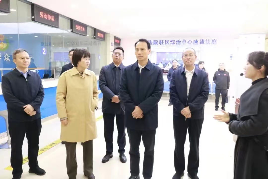 调研组一行首先来到石鼓区综治中心,实地察看群众接待大厅、“龙端喜”金牌调解室、“1+2+3”信访视频值班室等功能区域,详细了解综治中心在整合政法、信访、司法、调解等多方力量,推行“一站式受理、一揽子调处”工作机制方面的运行模式与实际成效。