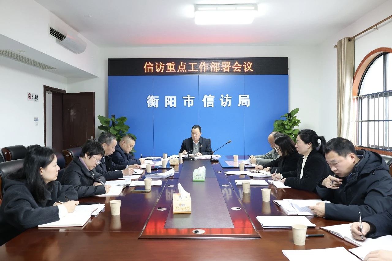 2月12日,衡阳市信访局召开信访重点工作部署会,传达学习中央信访联席会议及全国、全省信访局长会议精神,研究贯彻落实意见,部署重点工作任务。市政府副秘书长、市委社会工作部副部长、市信访局局长梁宇琦主持会议并讲话。