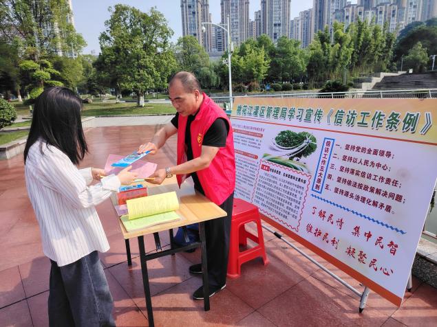 5月23日,桃江县信访局、县科工局、桃花江灌区管理局、县竹产业发展服务中心等部门在金盆广场联合开展《信访工作条例》实施两周年暨全省第七个信访法治宣传月集中宣传活动。